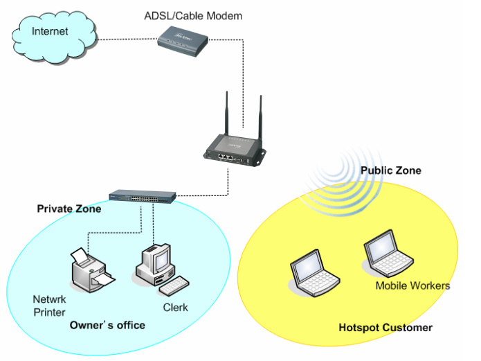 Wias 3200n cihazının Hotspot özelliği ile kullanıcılara belli bir kota ya da belli zaman aralıklarında, kullanıcı adı ve şifre tanımlayarak internet servisinden yararlanmalarını gerçekleştirebilirsiniz.Private ve Public arasındaki en önemli fark, private alanındaki kullanıcılar herhangi bir Authentication (kullanıcı adı veya şifreye) tabi olmadan kablolu ya da kablosuz internet erişimi sağlayabilirler. Bu nedenle networkünüzdeki yazıcı, server vs. gibi bağlantılarınızı Lan1 portundan bağlayınız. Bu kısımda oluşturduğunuz SSID adını ' Diğer Ağ ' içerisinde tanımlayarak bağlanabilirsiniz.