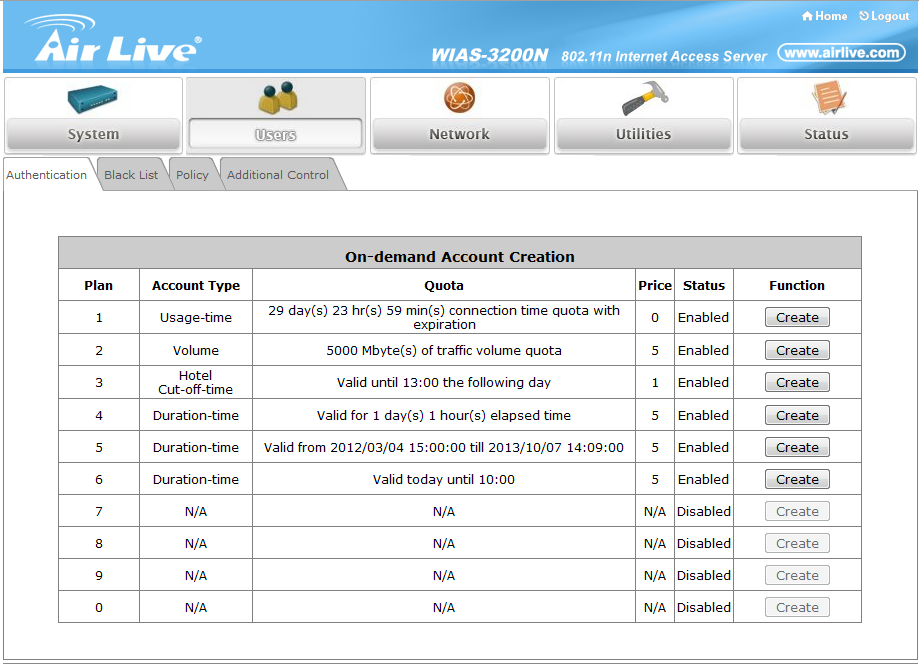 Airlive Wias3200n hotspot security gateway cihazı için genel kurulum, plan oluşturma, kullanıcı oluşturma gibi konulardan bahsetmiştik. Şimdi bu planları daha ayrıntılı şekilde inceleyelim ve Hotel Cut-off-time'ı ele alalım.