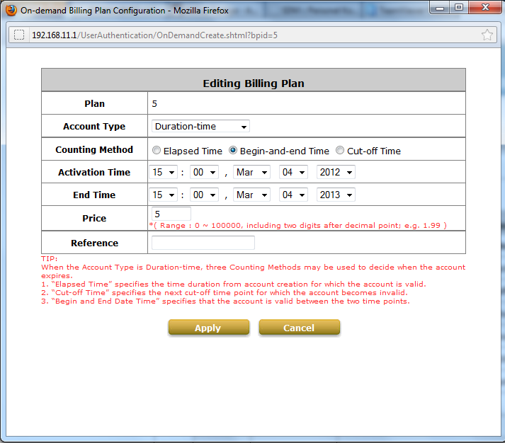Airlive Wias3200n hotspot security gateway cihazı için genel kurulum, plan oluşturma, kullanıcı oluşturma gibi konulardan bahsetmiştik. Şimdi bu planları daha ayrıntılı şekilde inceleyelim Duration-time Begin-and-end Time'ı ele alalım.