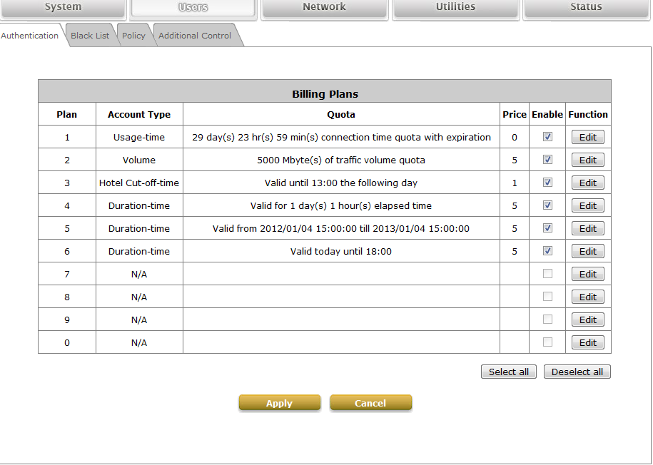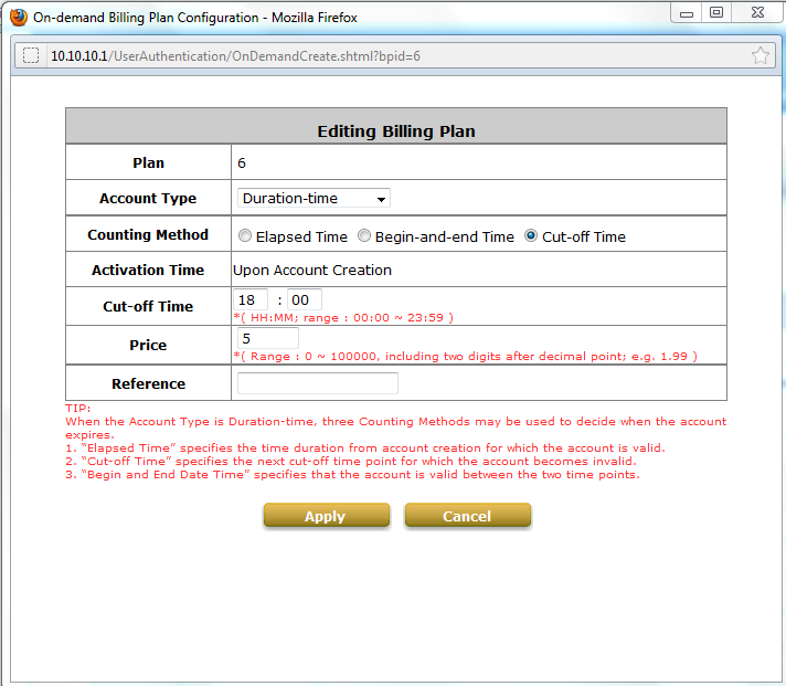 Airlive Wias3200n hotspot security gateway cihazı için genel kurulum, plan oluşturma, kullanıcı oluşturma gibi konulardan bahsetmiştik. Şimdi bu planları daha ayrıntılı şekilde inceleyelim Duration-time Cut-off Time'ı ele alalım.